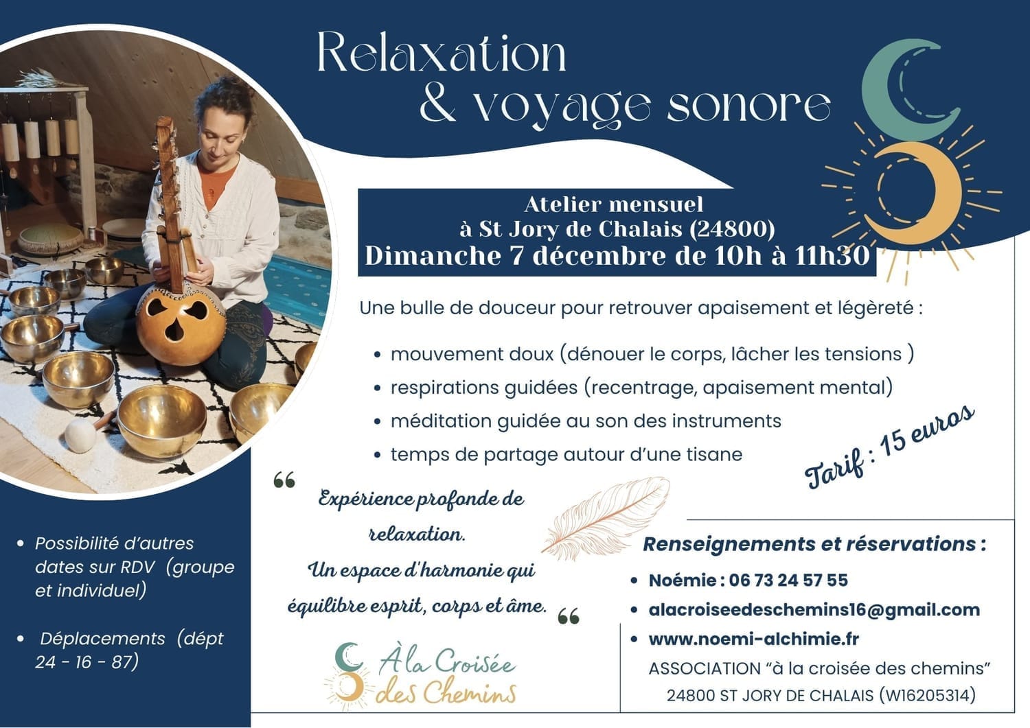 Je t'invite à rejoindre mes ateliers mensuels à Saint Jory de Chalais.